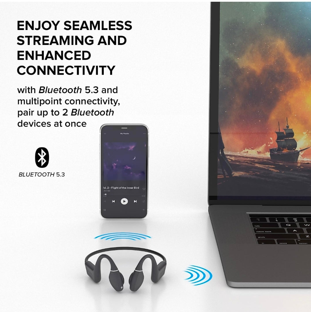 RAFINED OPEN EARS WITH ADJUSTABLE TRANSDUCERS - Using bone transmission technology, sound is transmitted directly to your inner ears through vibrations in your temporal bones. With adjustable converters, you can achieve optimal sound transmission and immerse in every stroke as you become aware of your surroundings